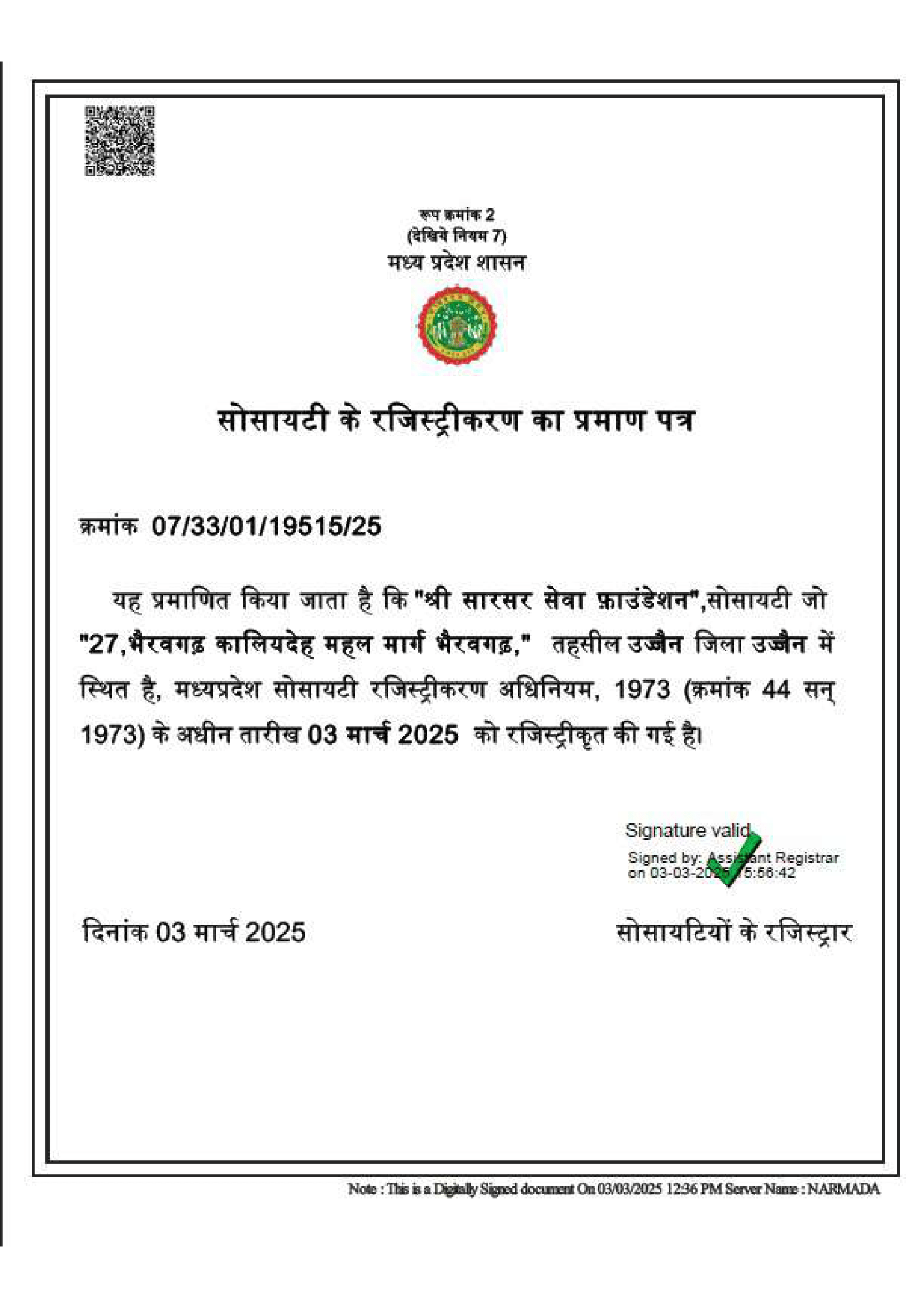 Shri Sarsarsewa Foundation is a non-government organization in Ujjain, Madhya Pradesh, India.